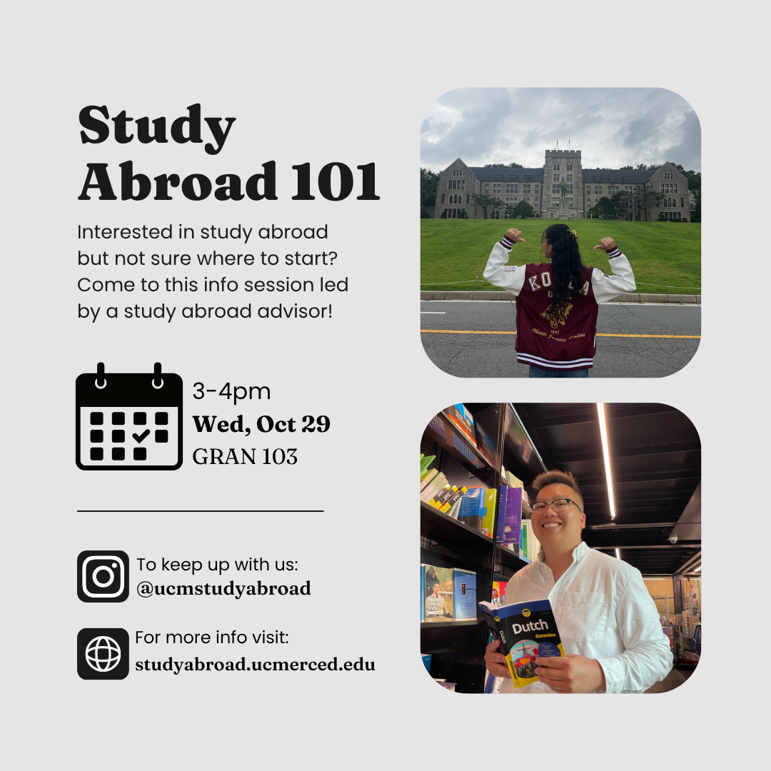 Interested in studying abroad but not sure where to start? Come to this info session led by a study abroad advisor.