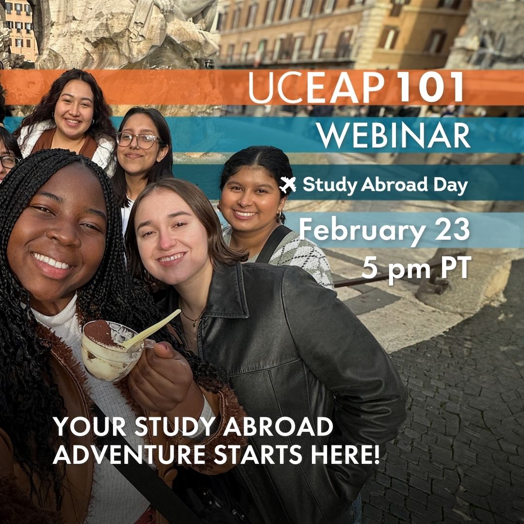 If you’re excited about studying abroad but aren’t sure how to get started, this session offers an introduction to UCEAP. With over 40 countries and 160 programs to choose from, we will discuss the benefits of participating on UCEAP, important topics to consider as you narrow down your study abroad options, as well as the resources we offer to help you select the best program to fit your needs.